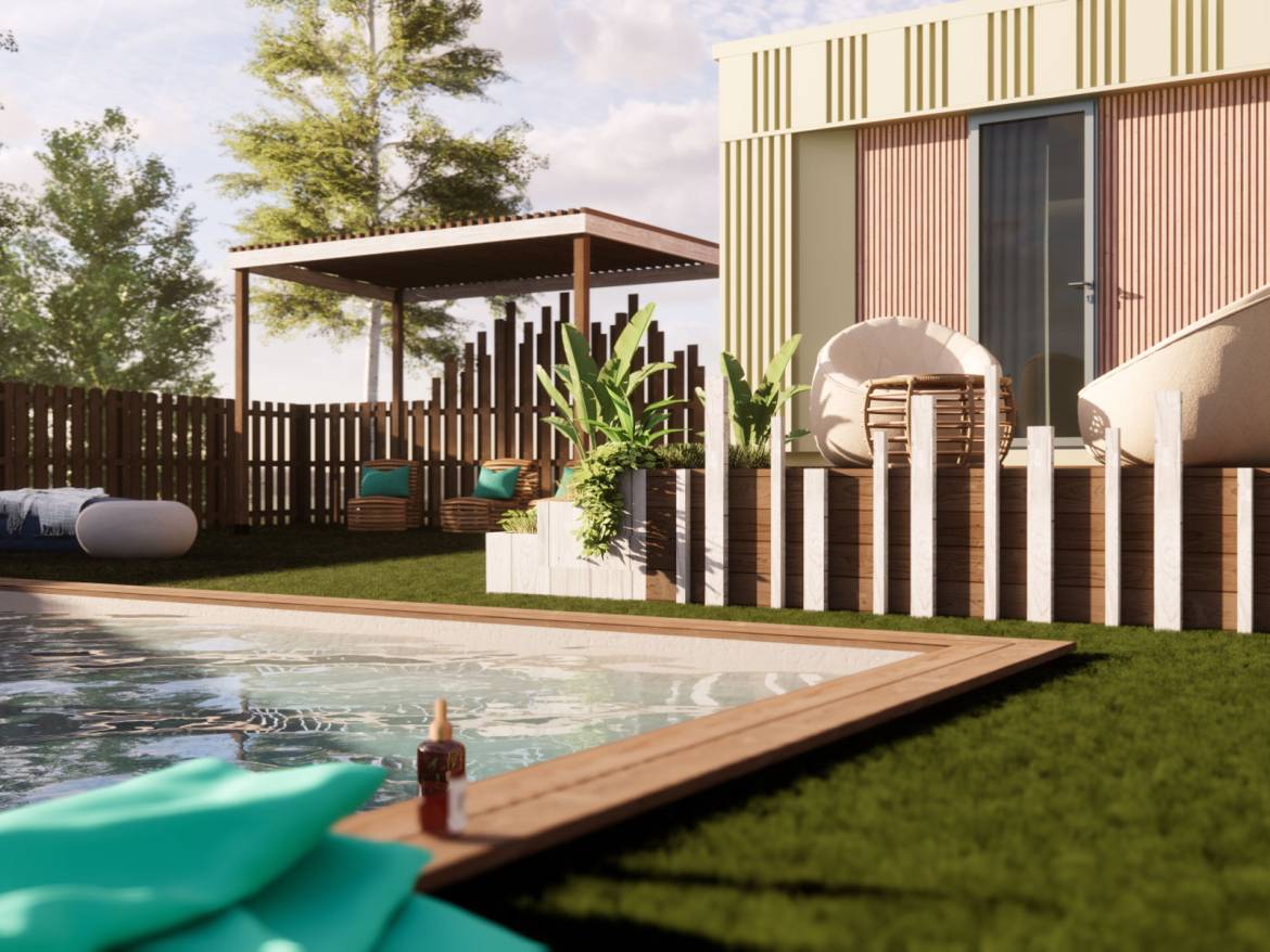 Het privézwembad van de accommodatie wordt van april tot september verwarmd tot 28 °C. U heeft ook toegang tot alle voorzieningen van de camping, waaronder het zwemparadijs.